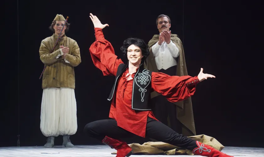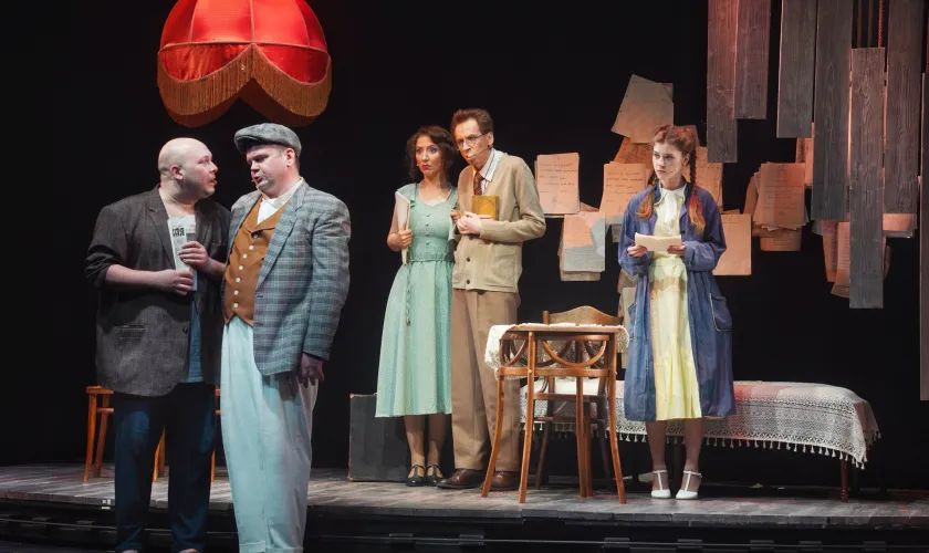 Особого внимания заслуживает актерская игра. В «Буффе» действительно один из сильнейших основных составов в городе, и всегда присутствует внутреннее соревнование талантов. Илья Кузнецов в роли главного героя демонстрирует удивительный актерский диапазон. Его герой — это живое воплощение той самой горьковской формулы: «Слеза сквозь смех». Кузнецов виртуозно балансирует на грани комического и трагического, и создается стойкое ощущение, что роль писалась именно под его уникальную пластику, тембр голоса и способность мгновенно переключать эмоциональные регистры. Его монологи были не просто заученным текстом, а глубоким, почти исповедальным проживанием.